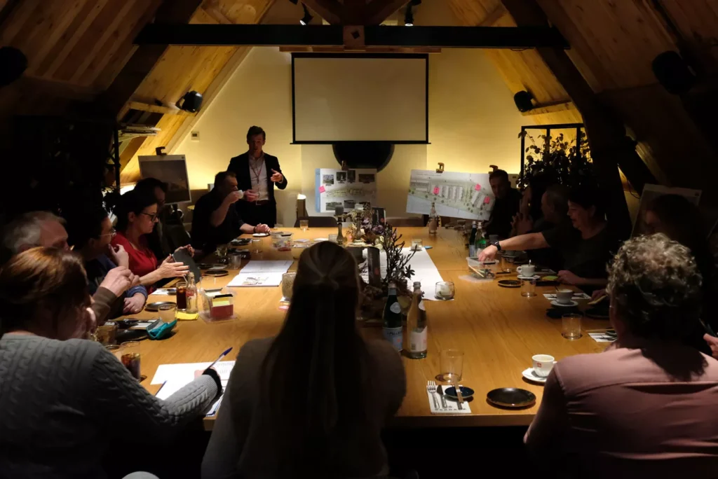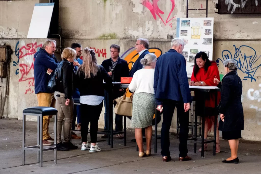 Het stedenbouwkundig plan werd besproken met verschillende disciplines van de gemeente. De gemeente Alblasserdam had het stoere standpunt; Als de omwonenden en de nieuwe bewoners het een goed plan vinden, vinden wij het ook goed. Op 16 juli 2020 organiseren we een gezellige bewoners avond. Hier werd helder gecommuniceerd wat vaststaande uitgangspunten zijn en over welke onderwerpen een idee een mening of zelfs een keuze wordt gevraagd.