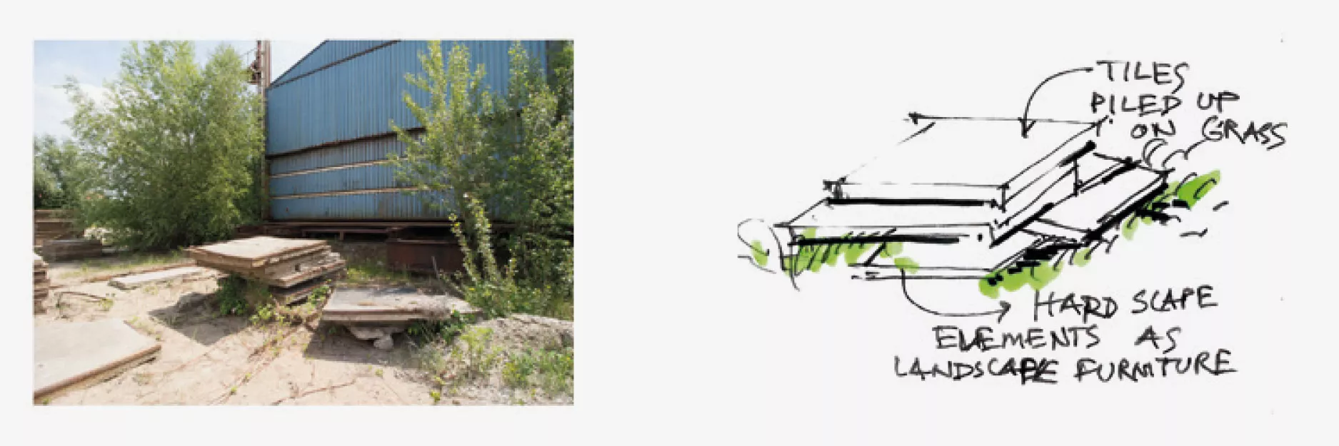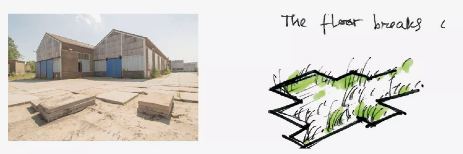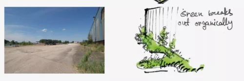 - Het laten spreken van het industriële verleden: dit wordt gedaan door het behoud van vele stoere, industriële elementen en te integreren in het plan. Ook met materiaalkeuze wordt het stoere karakter verder ondersteund;